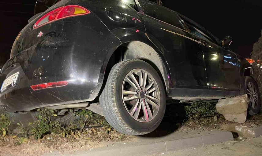 Karaman'da refüje çıkan otomobil askıda kaldı, sürücü yara almadı