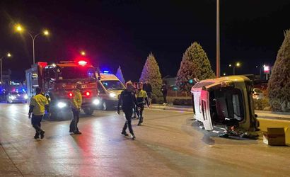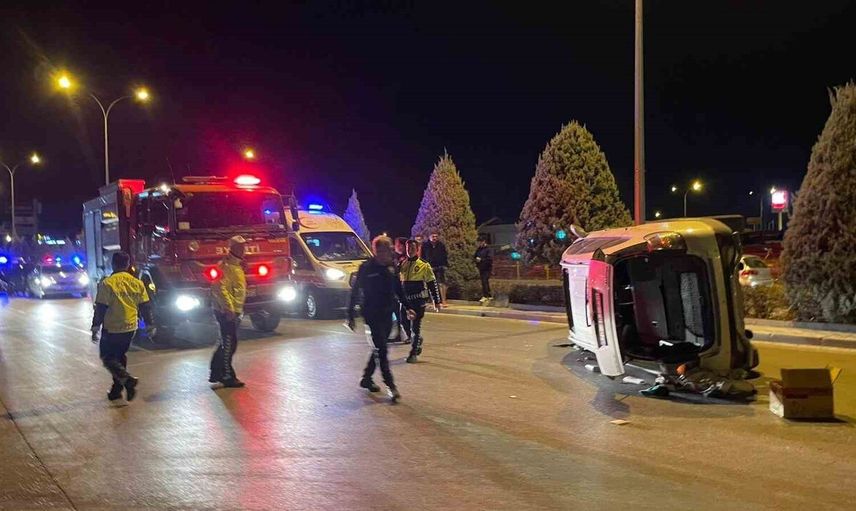 Karaman’ın Hamidiye Mahallesi Atatürk Caddesi üzerinde saat 23.30 sıralarında iki SUV tipi araç çarpıştı. Çarpışmanın şiddetiyle 70 ABJ 239 plakalı araç savrularak yol ortasına devrildi.