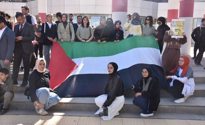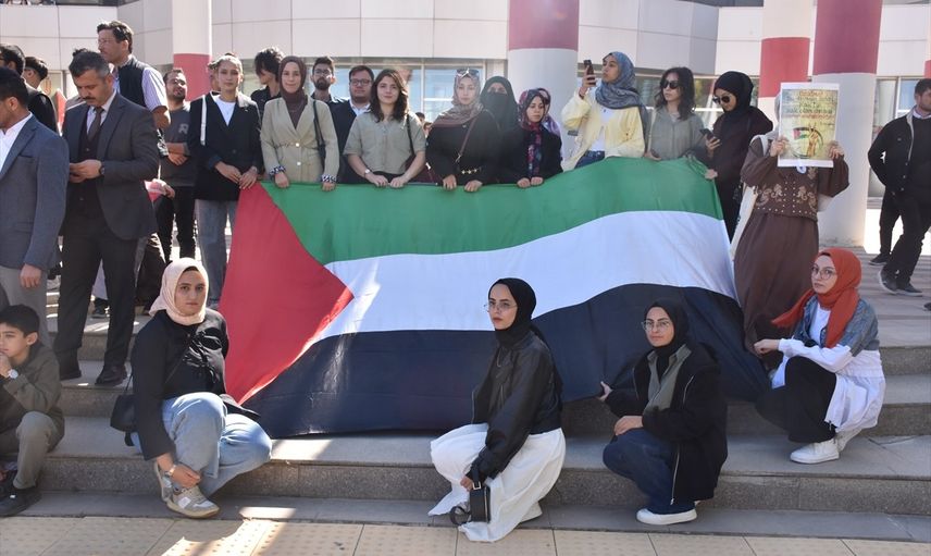 Karamanoğlu Mehmetbey Üniversitesi (KMÜ) öğrencileri, İsrail'in Filistin'e yönelik saldırılarına dikkat çekmek üzere bir yürüyüş düzenledi.
