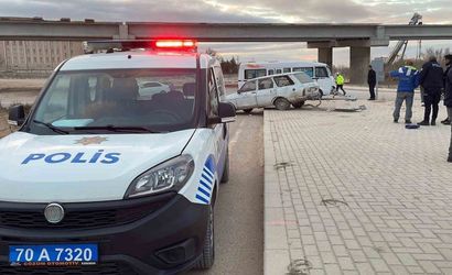 Karaman’ın Urgan Mahallesi 1993. Sokak kavşağında bir yolcu minibüsü ile bir otomobil çarpıştı. Olayda, E.D. idaresindeki 70 M 0153 plakalı yolcu minibüsü ile S.N. yönetimindeki 70 DL 216 plakalı otomobil kavşakta çarpıştı. Çarpışmanın etkisiyle savrulan otomobil kaldırıma çıkarak bir trafik levhasını devirdi.