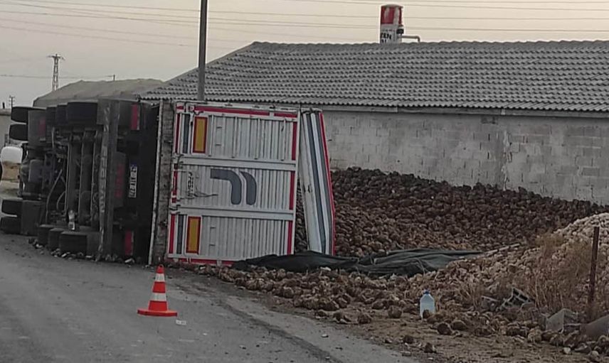Konya'nın Karapınar ilçesine bağlı Eşeli mevkiinde, 42 AOH 705 plakalı şeker pancarı yüklü tırı sürdüğü belirtilen M.Ö., direksiyon hakimiyetini kaybederek aracın kontrolünü yitirdi ve tır devrildi.