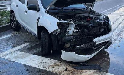 Karasu-Adapazarı yolunda yağış nedeniyle otomobil refüjdeki tabelaya çarptı