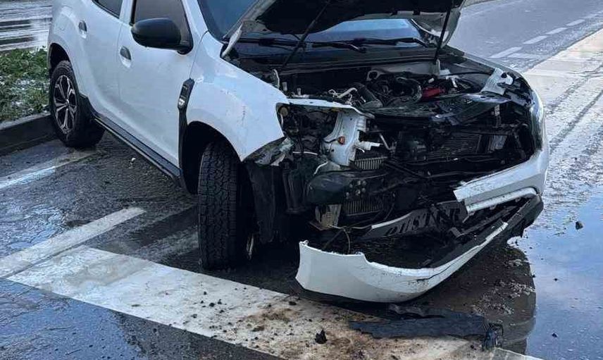 Edinilen bilgilere göre, yağışın etkisiyle kayganlaşan yolda sürücünün direksiyon hakimiyetini kaybettiği otomobil savrularak refüjdeki tabelaya çarptı. Çarpmanın etkisiyle araçta maddi hasar meydana geldi; araçta bulunan 5'i çocuk toplam 8 kişi kazayı yara almadan atlattı.