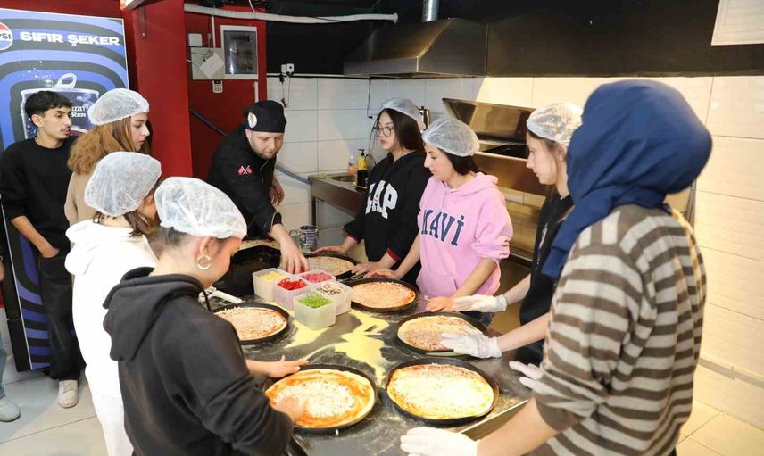 Atölyede öğrenciler, işin mutfağına girerek kendi pizzalarını hazırladı ve pişirdikten sonra arkadaşlarına ikram etti. Hem uygulamalı eğitim hem de ödül niteliğindeki etkinlik, katılımcılara pratik deneyim kazandırdı.