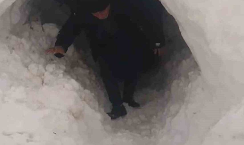 Besicinin kar tünelinden içeri girip çıkış anları cep telefonuyla kayda alındı; görüntüler olayın zorluğunu ve çaresizliği gözler önüne serdi.