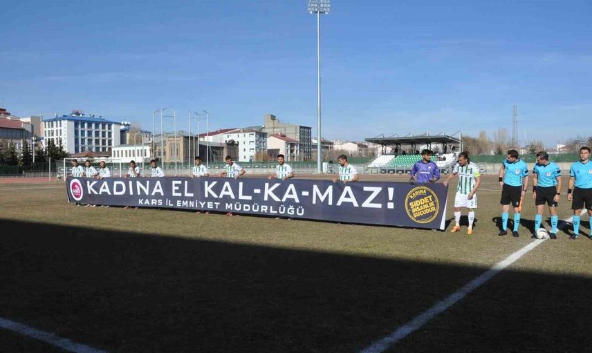 Müsabaka öncesinde iki takım futbolcuları, İl Emniyet Müdürlüğü Aile İçi Şiddetle Mücadele Biriminin hazırladığı 'Kadına el Kalkmaz' pankartıyla sahaya çıkarak kadına yönelik şiddete dikkat çekti.