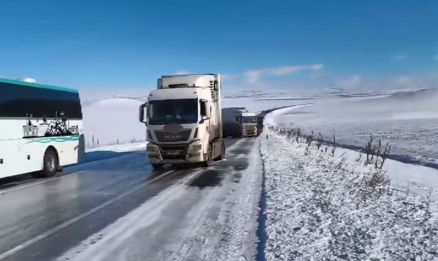 Kars-Gürcistan kara yolunda etkili olan kar yağışı sonrası ortaya çıkan aşırı buzlanma, ulaşımın durma noktasına gelmesine yol açtı. Yol yüzeyindeki kayganlık nedeniyle sürücüler kontrolü sağlamakta zorlandı ve bölge ulaşım açısından aksadı.