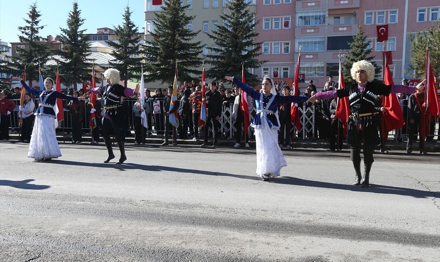 Törende Kars Valisi Ziya Polat, Garnizon Komutanı Tuğgeneral Naci Türe ve Kars Belediye Başkanı Ötüken Senger, Atatürk Anıtı'na çelenk sundu. Saygı duruşu ve İstiklal Marşı'nın okunmasının ardından halk oyunları ekibi gösteri yaptı.