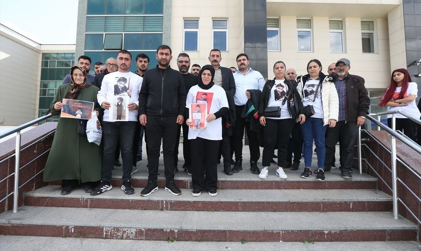 Kars'ta akülü aracıyla evinin önünde oynadığı sırada maganda kurşunu isabet etmesi sonucu hayatını kaybeden 6 yaşındaki Muhammet Poyraz Erdağ'ın ölümüne ilişkin tutuklu 5 sanığın yargılanmasına devam edildi. Anne Meltem Erdağ, (sol 4) duruşmaya oğlunun fotoğrafının yer aldığı ve üzerinde "Yaşamaya hakkım var" yazılı tişörtle geldi. Erdağ ailesine bazı vatandaşlar da adliye bahçesine gelerek destek verdi.