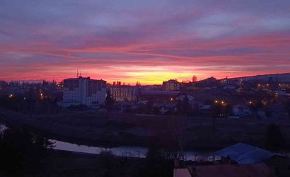 Kars'ta akşam saatlerinde güneşin alçalan ışıkları gökyüzünü kızıl renklere boyadı. Ortaya çıkan atmosferik manzara, çevrede bulunanlar ve kayıt altına alan kameralar tarafından görüntülendi.