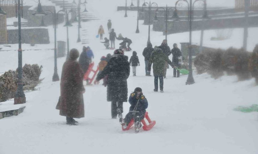 Kars’ta kar her şeyi beyaza bürüdü, şehir sokakları eğlenceye dönüştü