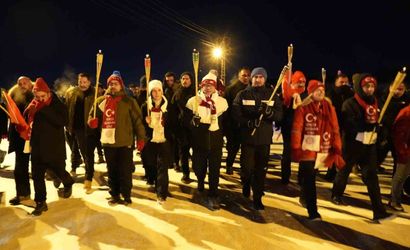 111 YIL ÖNCE SARIKAMIŞ HAREKATI’NDA ŞEHİT OLAN ASKER İÇİN BİNLERCE KİŞİ SOĞUK HAVADA MEŞALE YAKARAK ŞEHİTLİK ANITINA YÜRÜDÜ