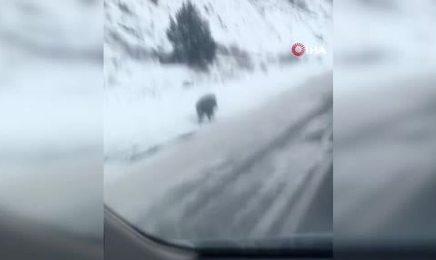 Görüntüyü kaydeden sürücü Vedat Demiral’ın cep telefonu kamerasına yansıyan görüntülerde, domuzun yol kenarında rahatça yürüyüş yaptığı ve daha sonra geri dönerek dağa doğru çıktığı görülüyor. Kayıtlarda hayvanın bölgedeki kış koşullarına rağmen sakin hareketleri dikkat çekiyor.