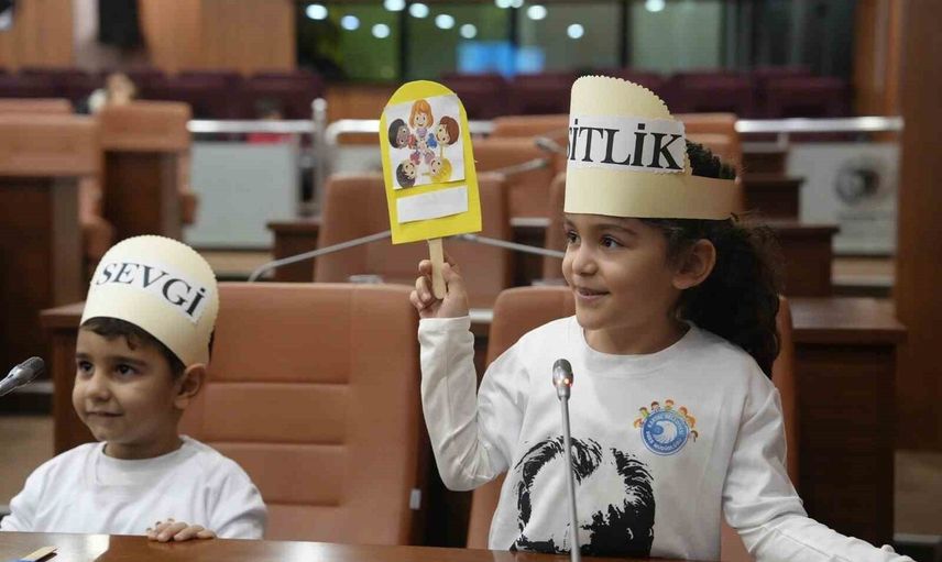 Çocuklar özenle hazırladıkları pankart ve resimlerle meclis salonuna girip, demokrasinin merkezi sayılan meclis koltuklarına mesajlarını yerleştirdi. Saygı duruşu yapılıp İstiklal Marşı okunduktan sonra, öğretmenlerinin eşliğinde seçim gerçekleştirildi.