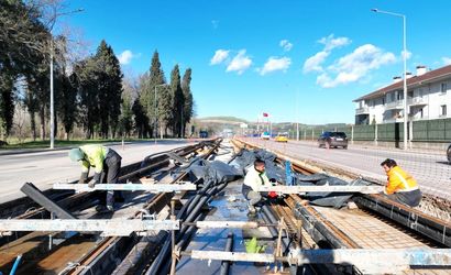 Kartepe tramvay hattında ray döşeme çalışmaları başladı