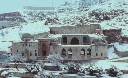 Kasımiye Medresesi, etkili kar yağışının ardından beyaz bir örtüyle kaplanarak Mardin’in kadim siluetine farklı bir görsel zenginlik getirdi. Karla kaplanan medresenin tarihi dokusu ve mimari zarafeti bu mevsimde daha belirgin hale geldi.