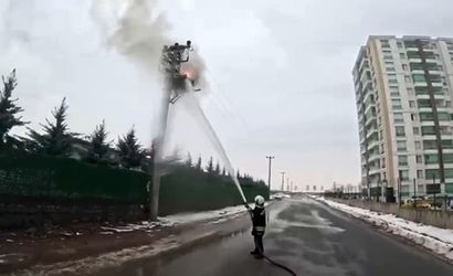 Kask kamerasına yansıyan elektrik direği yangını