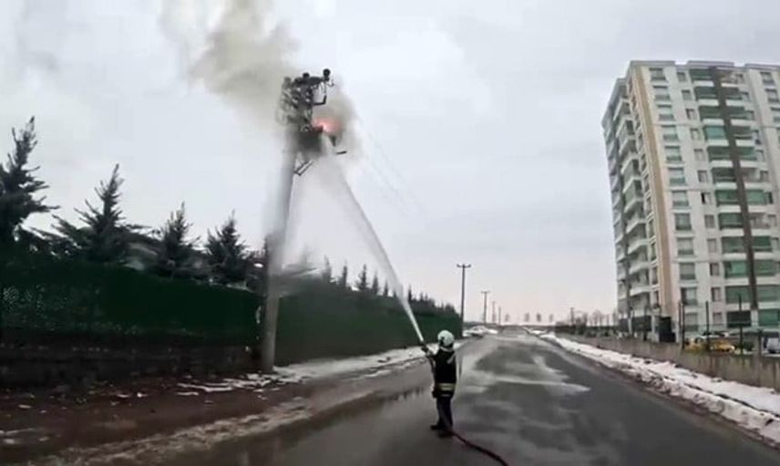 Kayapınar ilçesindeki Mezopotamya Bulvarı üzerinde bulunan elektrik direğinin tepesinde yer alan trafoda, henüz belirlenemeyen bir nedenle yangın çıktı.