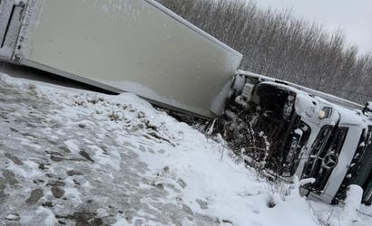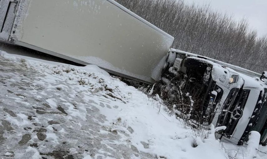 Edinilen bilgiye göre, Kastamonu'nun Daday ilçesi Çömlekçiler köyü mevkiinde etkili olan kar yağışı sonrası yolun kayganlaşması nedeniyle C.K. yönetimindeki 34 NEV 052 plakalı Mercedes marka tır, sürücüsünün direksiyon hakimiyetini kaybetmesi sonucu tarlaya devrildi.