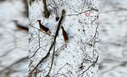 Kastamonu'da karla kaplı ormanda karacalar dronla kaydedildi