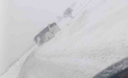 Ayrıca aynı bölgede bir minibüs de kayarak şarampolde kara saplandı.