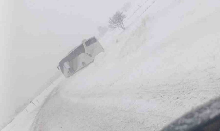 Kar ve tipinin etkili olduğu bölgede otobüs vinçle kurtarıldı, yolcular başka araca aktarıldı