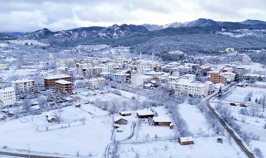İhsangazi ilçesinde ortaya kartpostallık görüntüler çıktı; ilçenin beyaz örtüyle kaplanan görünümü havadan kayda alındı.