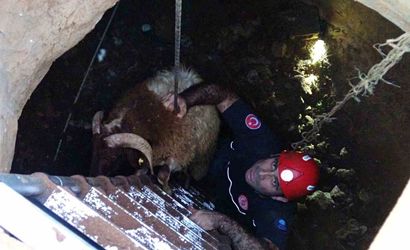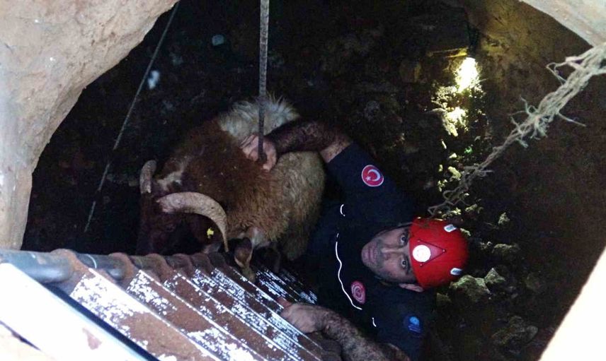 Kayıp sanılan 2 koyun, çocuğun sesiyle 5 metrelik kuyudan kurtarıldı