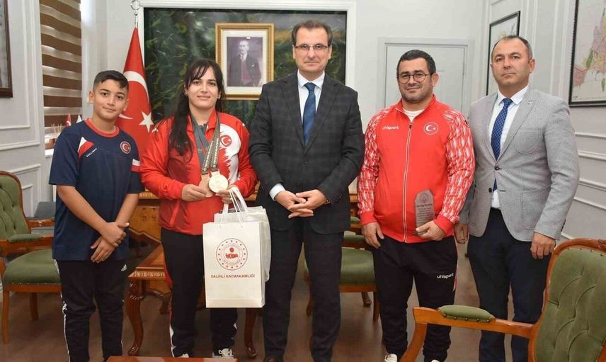Salihli Kaymakamı Ali Güldoğan, Japonya'nın Tokyo kentinde düzenlenen 25. İşitme Engelliler Yaz Olimpiyat Oyunları'nda 78 kilo kategorisinde bronz madalya kazanan Yadigar Talayhan'ı makamında kabul ederek başarı plaketi takdim etti. Ziyarette Salihli İlçe Gençlik ve Spor Müdürü Oktay Ayaz da yer aldı.