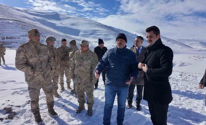 Tuzluca Kaymakamı Abdüllatif Yılmaz, Kaymakam Adayı Eftal Palabıyık ile birlikte ilçede yapımı devam eden Ünlendi Barajı inşaat alanında incelemelerde bulundu.