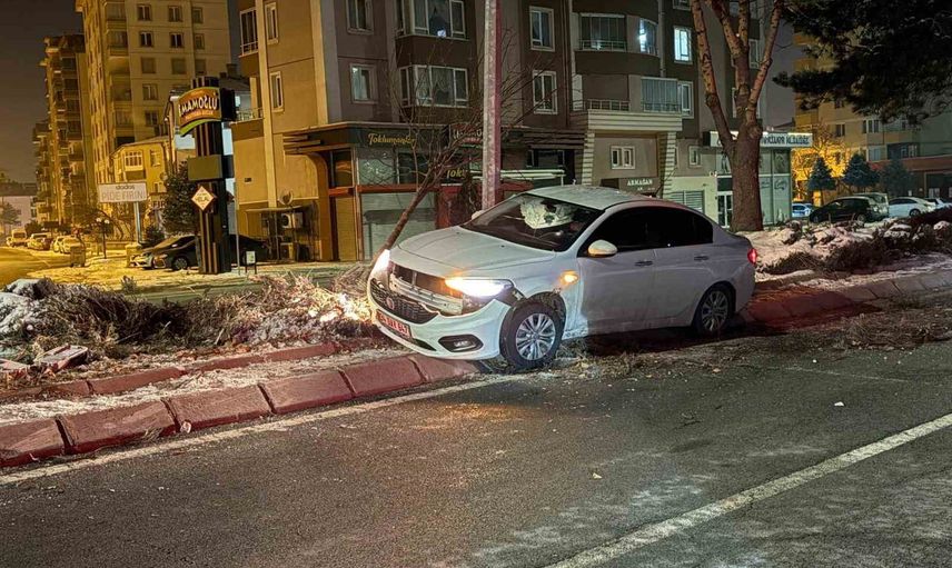Kayseri'nin Melikgazi ilçesinde direksiyon hakimiyetini kaybeden sürücü önce refüjdeki ağacı devirdi, ardından aydınlatma direğine çarparak durabildi.