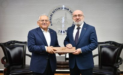 KAYSERİ BÜYÜKŞEHİR BELEDİYE BAŞKANI DR. MEMDUH BÜYÜKKILIÇ; KAYSERİ ÜNİVERSİTESİ REKTÖRÜ PROF. DR. KURTULUŞ KARAMUSTAFA'YI MAKAMINDA AĞIRLADI.