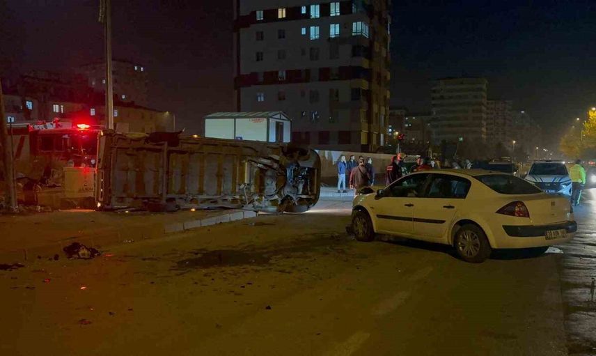 Kayseri'de servis aracı yandan çarpma sonucu yan yattı