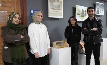 Konuklar, öğrencilerin üretim kültürünü ve yaratıcı fikirlerini aynı çatı altında buluşturan sergide sergilenen işleri ilgiyle gezdi.