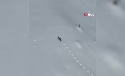 Karabük’teki 2 bin rakımlı Keltepe Kayak Merkezi, hafta sonu ziyaretçilere açıldı. Tesisi ziyaret eden ve teleferiğe binen bir kişi, kayak pistleri yakınlarında kar üzerinde koşan bir yaban tavşanı fark etti.