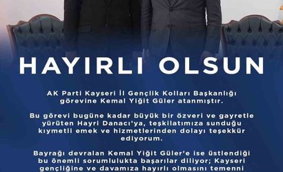 Kemal Yiğit Güler AK Parti Kayseri İl Gençlik Kolları Başkanlığı görevine getirildi. Bu atama, 1 aya yakın bir süre önce görevinden ayrılan Hayri Danacı'nın yerine yapıldı.