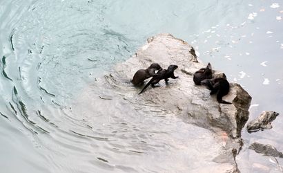 Erzincan'ın Kemaliye ilçesinde Sibirya soğuklarının etkisiyle büyük bölümü buzla kaplanan Fırat Nehri'nde, 4 su samuru görüldü. Soğuk havaya rağmen nehirde hareket halinde olan bu canlılar, bölge halkı ve doğa fotoğrafçılarının ilgisini çekti.