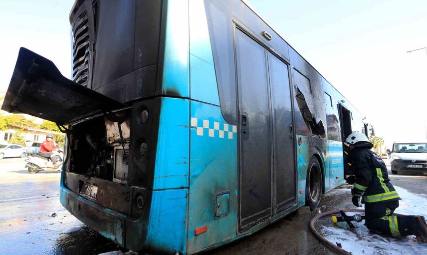 Kepez'te seyir halindeki halk otobüsünde motor yangını