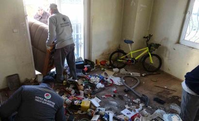 Antalya Kepez'de, apartman sakinlerinin şikayeti üzerine bakıma muhtaç olduğu belirlenen 75 yaşındaki Şaban C.'nin yaşamını sürdürdüğü dairede biriken atıklar temizlendi.