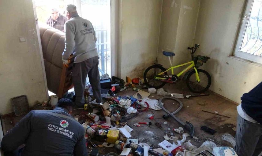 Aynı apartmanın giriş katındaki daire için Ünsal Mahallesi 5118 Sokak adresindeki komşular, oluşan kötü koku ve biriken çöpler nedeniyle ilgili kurumlara başvurdu. Yapılan ön incelemede Kepez Belediyesi ekipleri, adreste sağlığa elverişsiz şartların oluştuğunu tespit etti.