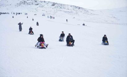 Niğde'de karla birlikte kayak ve kızak keyfi