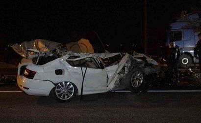 PARK HALİNDEKİ TIRA ÇARPAN OTOMOBİL HURDAYA DÖNDÜ:1'AĞIR 2 YARALI