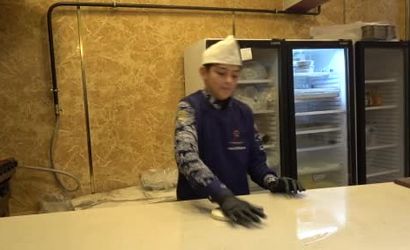 Ahmet El Hulu: '1 yaşındayken Suriye’den geldim. Burada katmer ve künefe yapmayı öğrendim. Birçok tatlıyı yapabiliyorum. Okulum bittikten sonra Halep’in Azez kentinde Türkiye’de öğrendiğim tatlıları ve Kilis katmerini Suriye’de tanıtacağım' dedi ve duygularını Türk bayrağını öperek ifade etti.