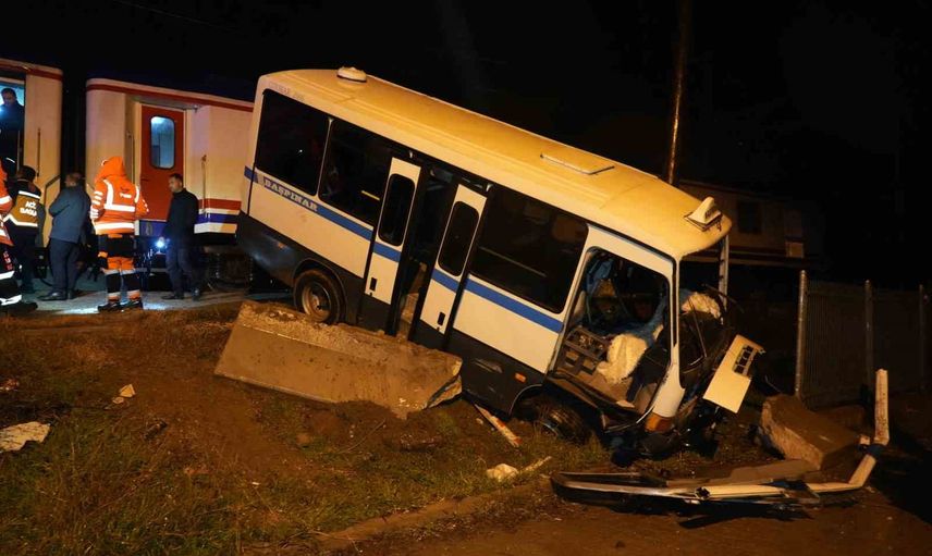 Kırıkkale'de hemzemin geçitte dolmuşa tren çarptı