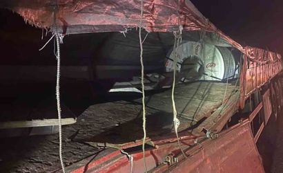 Devrilen tırın dorsesindeki rulo demir başka bir tıra çarparken, kazada yaralanan olmadı