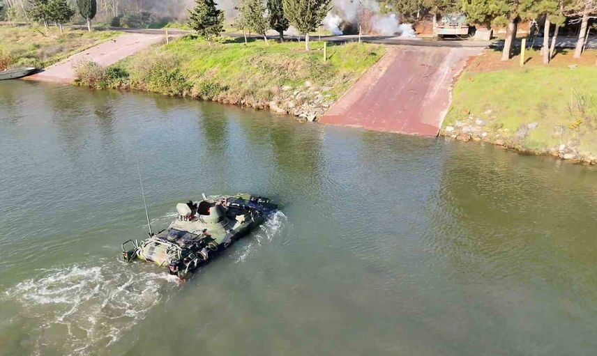 Eğitimi 54’ncı Mekanize Piyade Zırhlı Tugay Komutanlığı düzenledi. Tatbikatta Türkiye yapımı Samur aracı karadan ilerleyip suya girerek kısa sürede seyyar köprüye dönüştü.