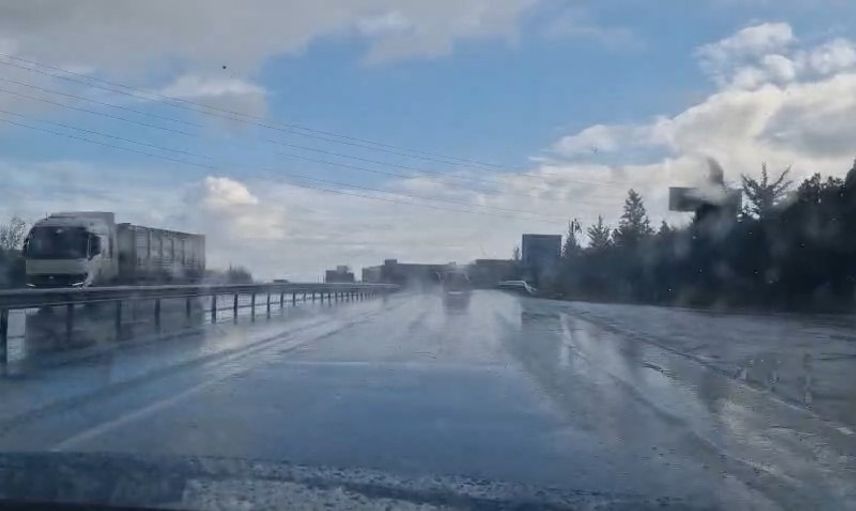 Şiddetli yağmur nedeniyle sürücüler trafikte güçlük yaşadı; bazı araçlar kontrollü hızla ilerleyebildi. Yağışın yoğun olduğu sırada, henüz sürücüsünün kimliği öğrenilemeyen bir Mercedes marka otomobil, önünde seyreden tıra arkadan çarptı ve takla attı.