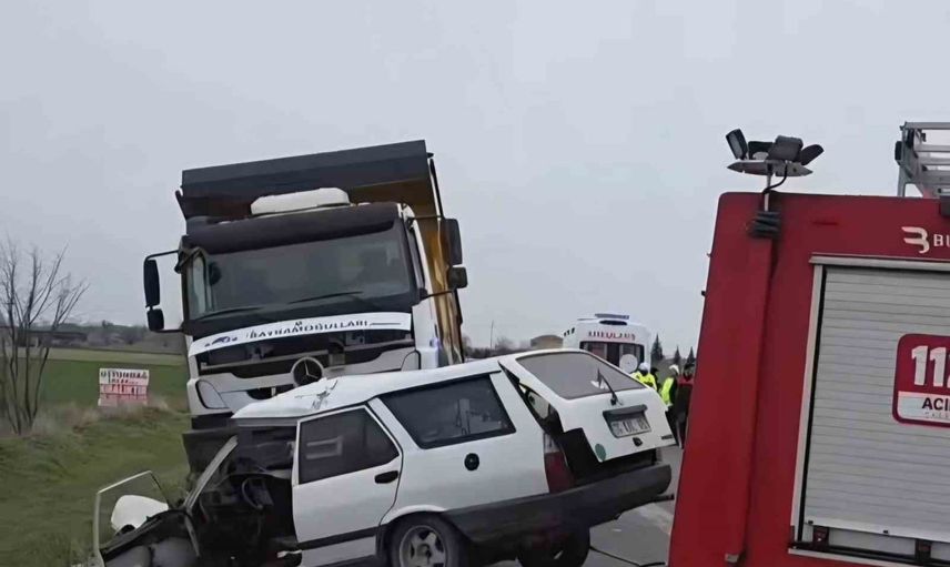 Kırklareli merkezine bağlı Eriklice köyü yolu üzerinde seyir halinde olan bir otomobil, karşı şeritten gelen bir kamyonla çarpıştı.