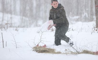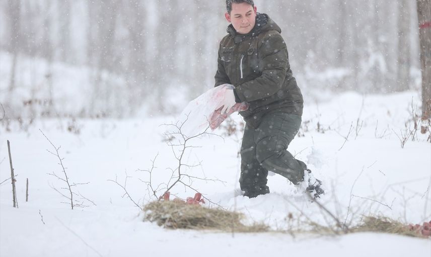 Kırklareli'nde, Doğa Koruma ve Milli Parklar Müdürlüğü ekipleri, yaşanan yoğun kar yağışı nedeniyle yiyecek bulmakta zorlanan yaban hayvanları için doğaya yem bırakma çalışmaları başlattı.