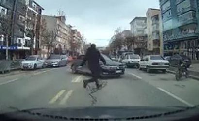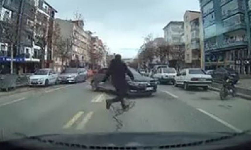 Yaşananlar, yoldan geçen bir sürücünün otomobil kamerasına yansıdı. Görüntülerde aracın ilerlediği ve müdahalenin gerçekleştiği anlar yer aldı.